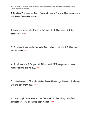 2 5 10 Times Tables Word Problems