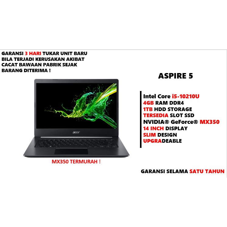 Windows 10 untuk varian yang ini hargnya kisaran berapa ya itu. 8gb ddr4 sdram 2 667mhz. Acer aspire 5 a514 52g 14 inch laptop 10th gen intel core i5 10210u processor 8gb 512gb ssd window 10 home 64bit 2 gb of nvidia mx350 graphics silver 3 9 out of 5 stars 6 61 998 00 61 998. 1 tb hdd graphic.